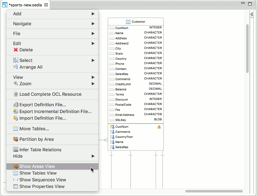 Reference HelpViews Database Views Database related views can also be open directly from the contextual menu of a diagram open in the editor.