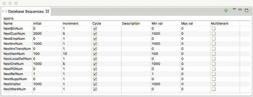 The Sequences view is a list view that can be used to visualize and update all sequences of the selected database.