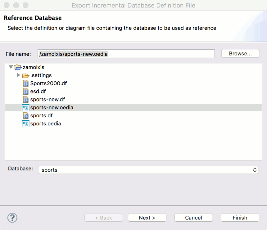 The workspace file that contains the database model to be used as reference - diagram (.oedia) or data definition (.df). |