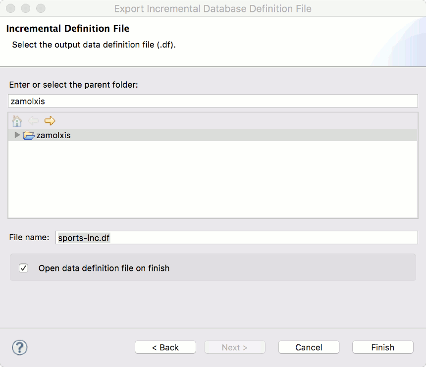 Here is how the Export Incremental Database Definition File wizard looks like: